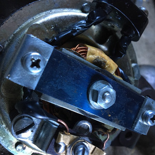 ポイントでの通電の調節と 電流の遮断 二日間 暇がある時に修理してたが、もう辞めようと諦めかけた時 ポイントの調節に重しの磁石を挟む事で、ミリ単位の